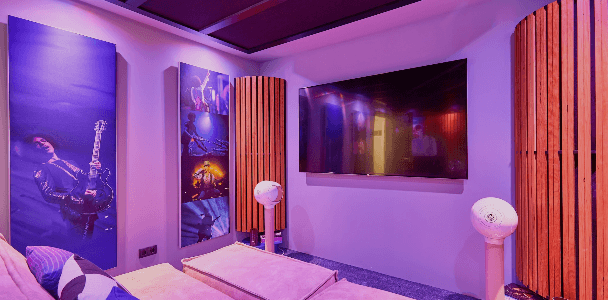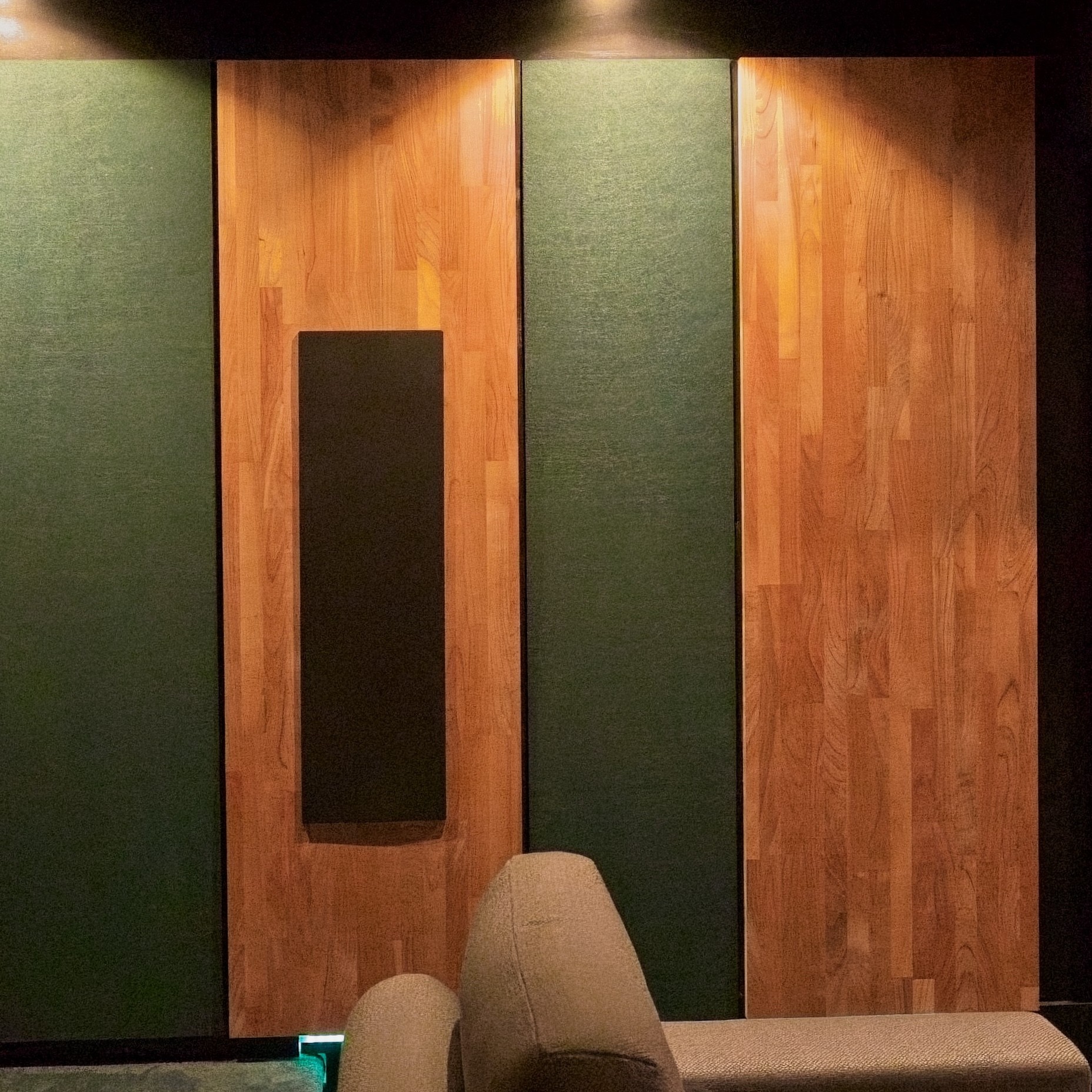 Ruimtelijkheid en frisheid in de geluidsweergave worden door akoestische diffusers toegevoegd.